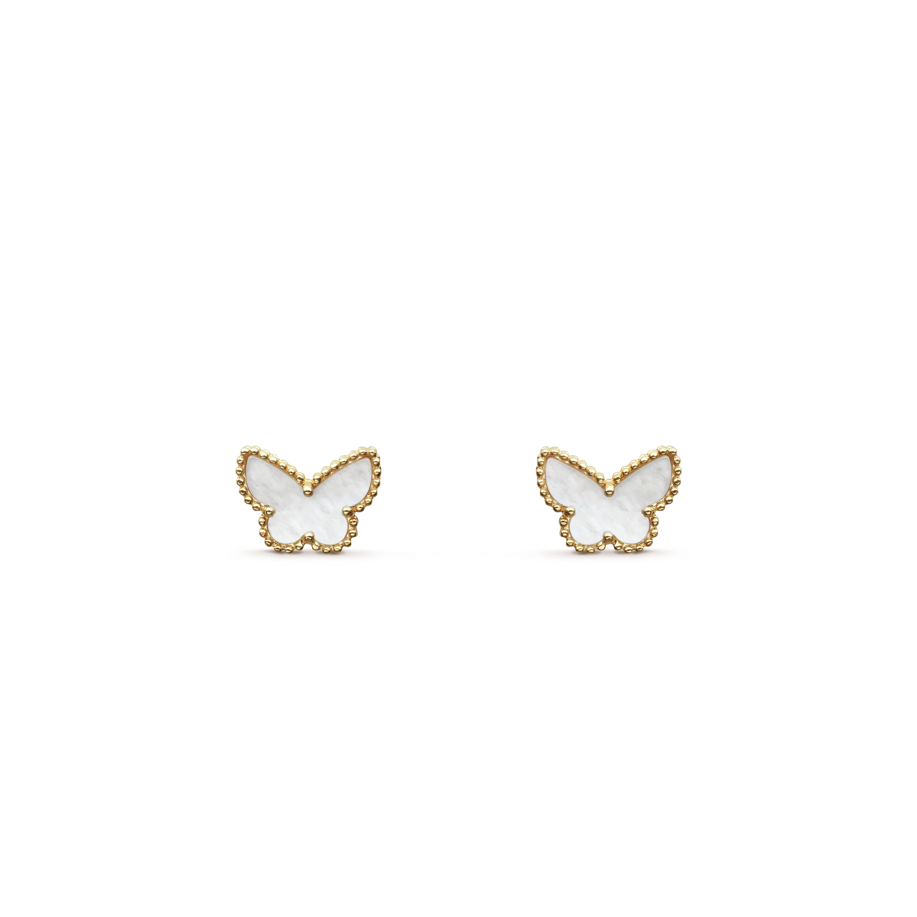 Khuyên tai hình bướm trắng Van Cleef & Arpels được chế tác từ chất liệu vàng trắng 18K, kết hợp với xà cừ trắng. Bướm là biểu tượng của sự tự do, biến hóa và may mắn. Trong văn hóa phương Đông, bướm còn được coi là biểu tượng của tình yêu và hạnh phúc.